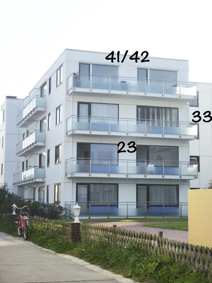 Unsere Ferienwohnungen 23, 33 und 41/42 haben einen großen Balkon, Kabel-TV sowie eine Stereoanlage und kostenloses Wlan.