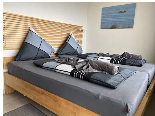 Nichtraucher Drei-Zimmerwohnung mit fantastischem Nordseeblick über die Strandpromenade zeitweise bis nach Helgoland durch die breite Fensterfront jeweils vom Wohnzimmer und dem Schlafzimmer aus.